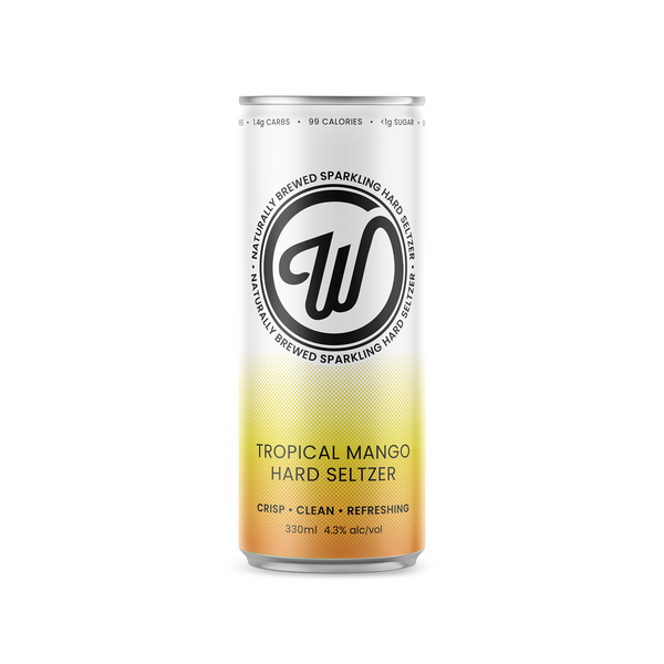 Our Tropical Mango hard seltzer is the ultimate beach time bevvy. Fill up the esky and wave in the good times! Naturally brewed with a rice base to a recipe that took over a year to perfect, our W Seltzer tinnies are crisp, clean and refreshing, with a hint of real fruit extract and no nasty stuff.